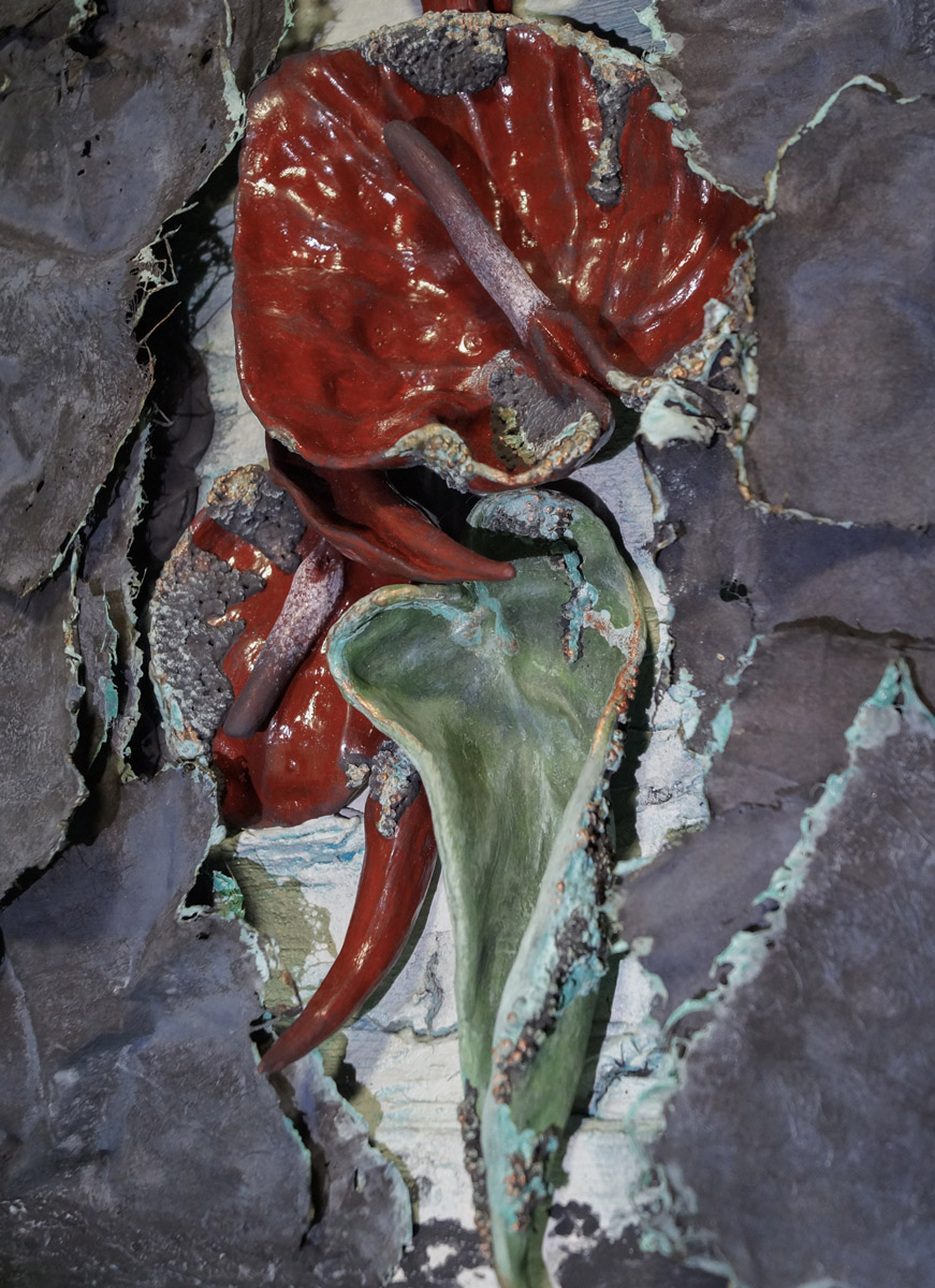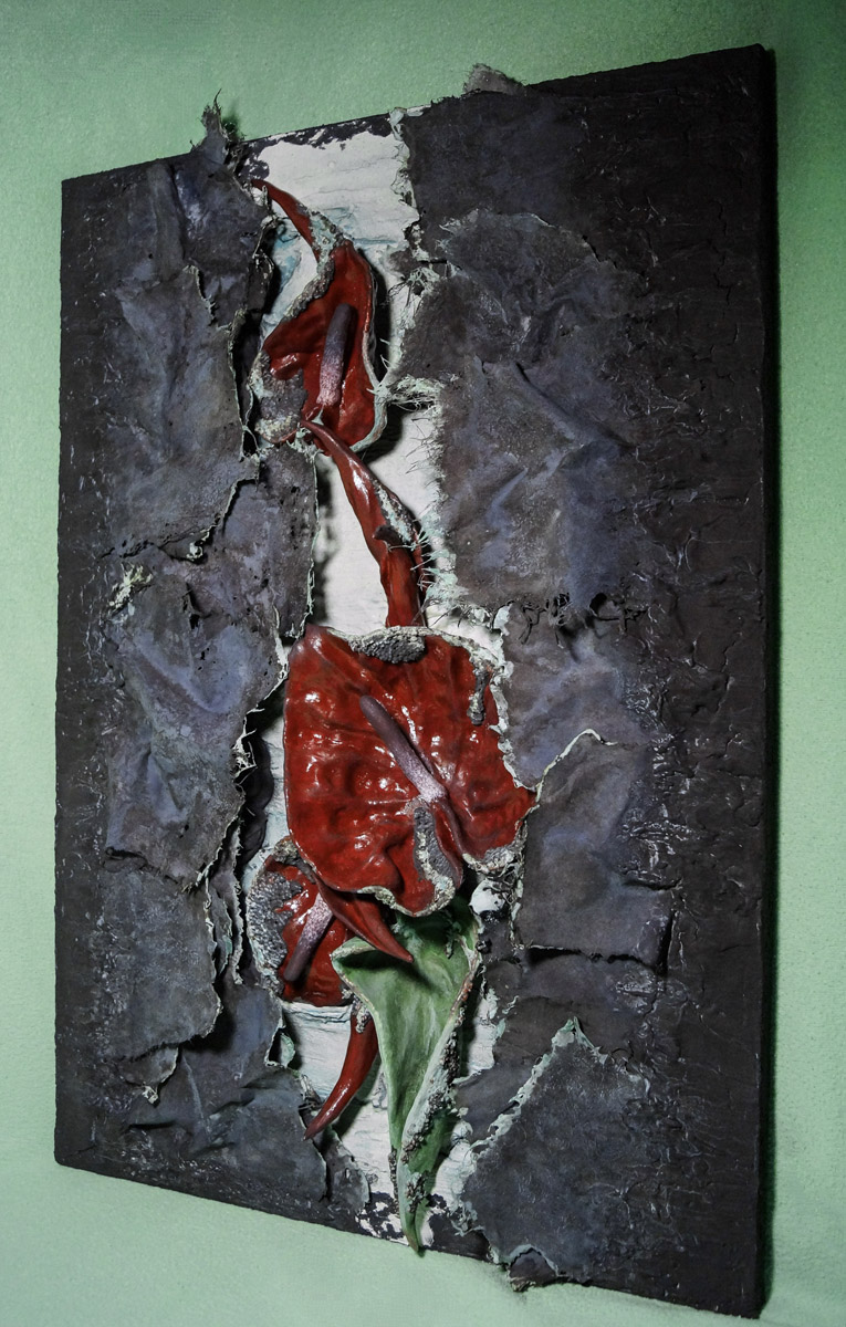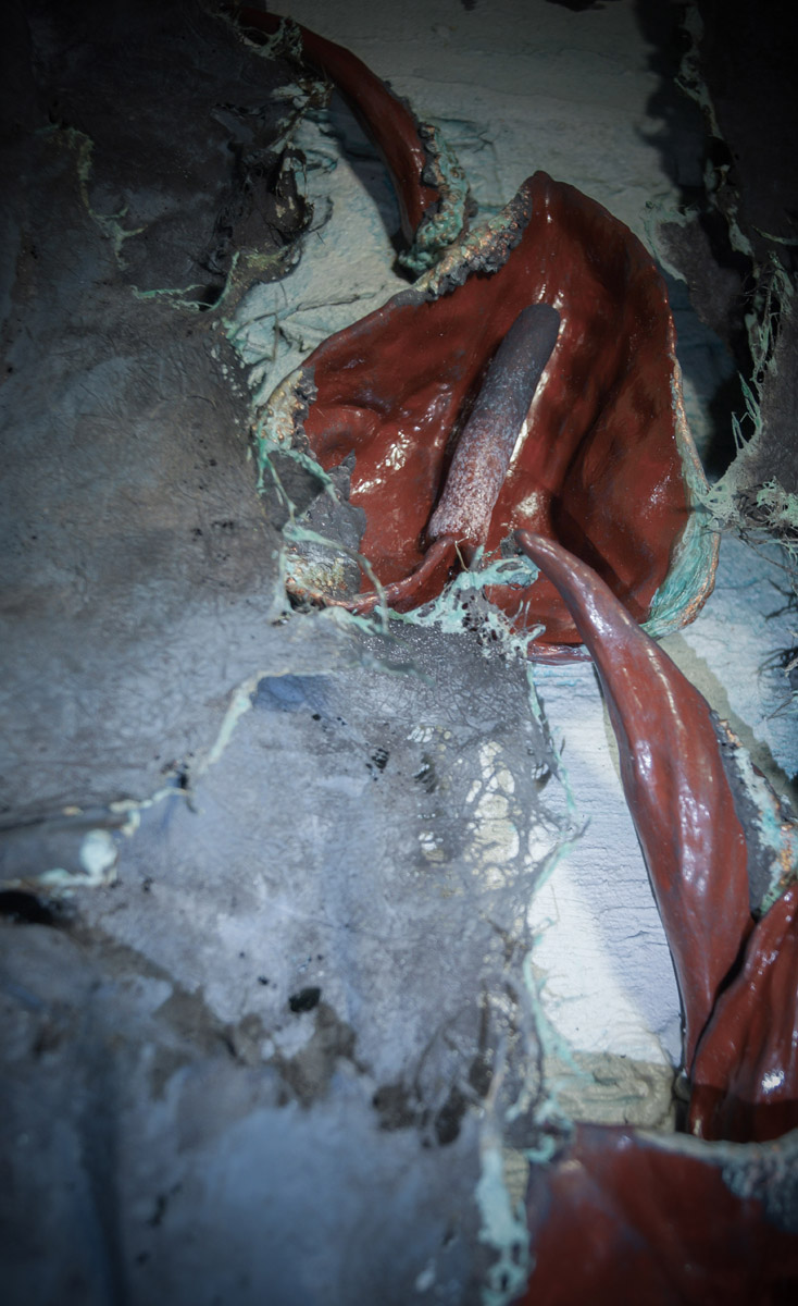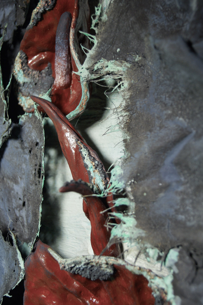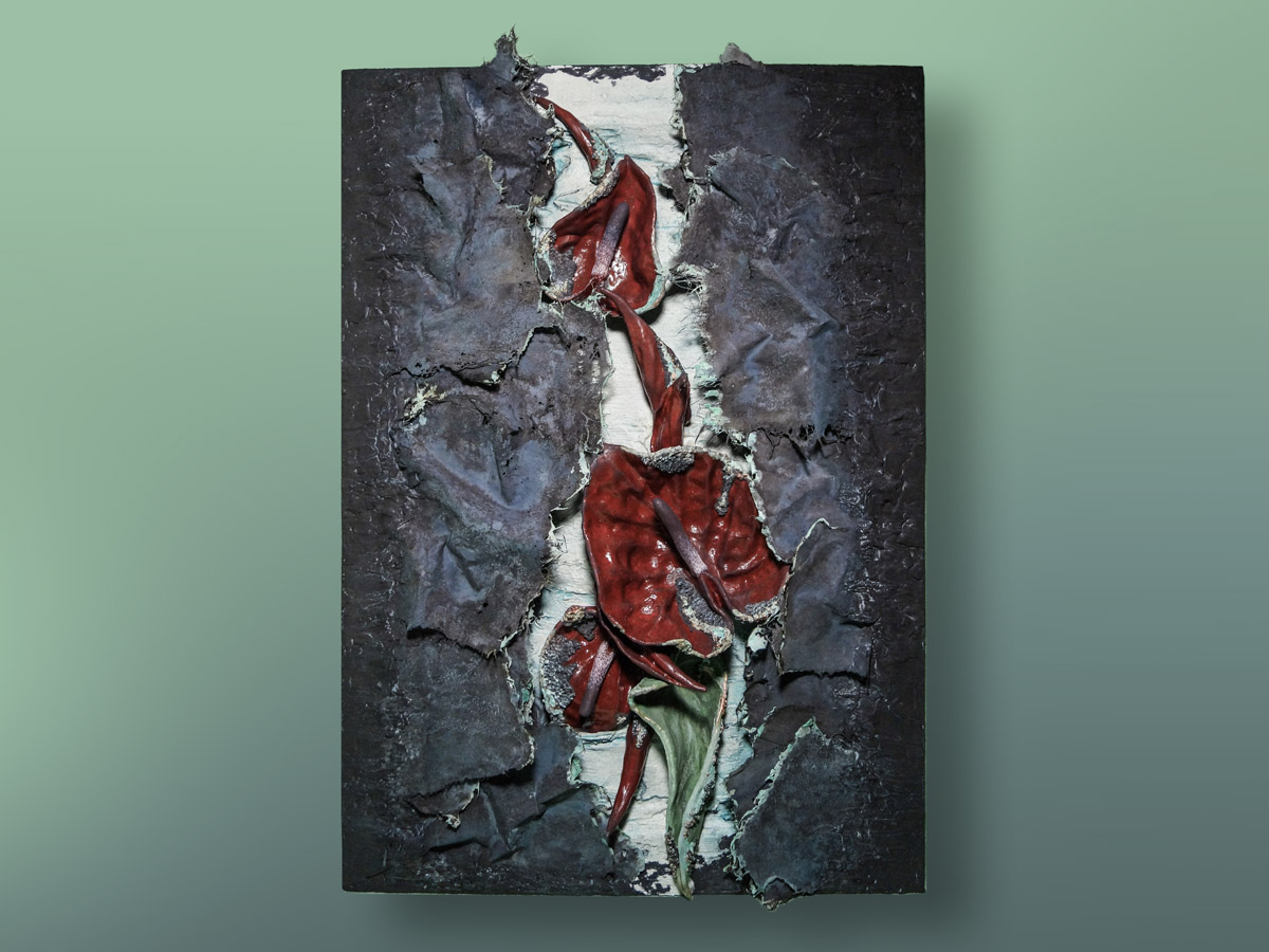 Елена Зацепина работает в уникальной авторской технике. Для своего проекта Exogenia она использовала пеньковую бумагу Лектон ручного черпания.